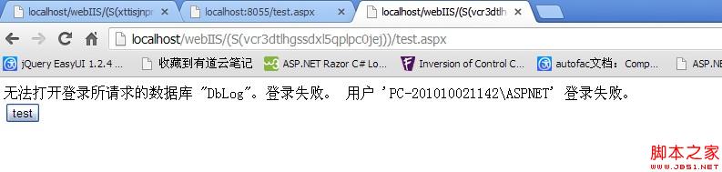在IIS中访问出现了问题,显示的不是数据库中的数据,而是在异常信息中显示的异常信息。这是什么原因呢?看异常信息提示,打开数据库失败,这是为什么呢?从这个原因我们可以考虑几个方面。